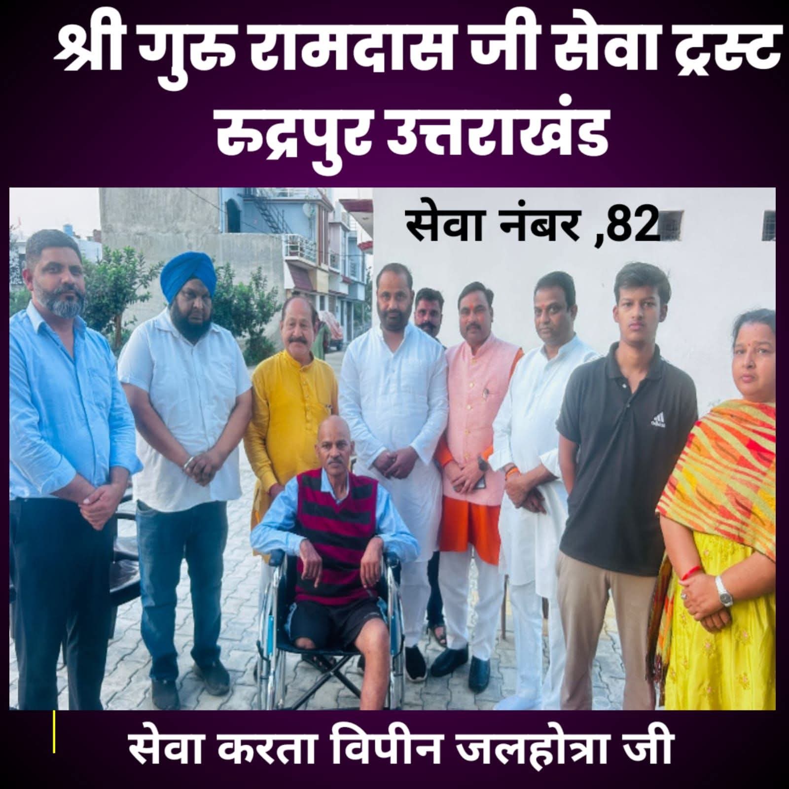 सेवा नंबर 82 के अंतर्गत श्री गुरु रामदास जी सेवा ट्रस्ट, रुद्रपुर द्वारा मानवता की मिसाल पेश करते हुए जरूरतमंद एवं असहाय लोगों के लिए निशुल्क व्हीलचेयर सेवा चलाई जा रही है। इस सेवा का लाभ उन लोगों को मिल रहा है जो शारीरिक रूप से असमर्थ हैं और आवागमन में परेशानी का सामना करते हैं।