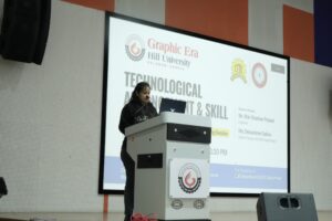 दूसरी वक्ता सुश्री देबाश्री साहू ने AI-ML के वर्तमान रुझानों, करियर संभावनाओं और आवश्यक कौशलों पर विस्तार से चर्चा की। वे UI/UX डिज़ाइनर होने के साथ-साथ Google Developer Groups Bhubaneswar की कोर डिज़ाइन टीम की सदस्य भी हैं। उन्होंने विद्यार्थियों को उद्योग की जरूरतों के अनुरूप स्वयं को तैयार करने और नवाचार आधारित सीखने के लिए प्रेरित किया।